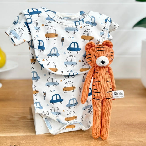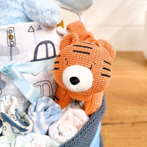 A beautiful and practical gift for a little one, this Animal Adventure Nappy Cake includes: