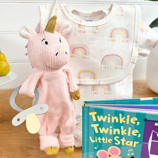 This nappy cake comes beautifully wrapped in cellophane with a ribbon and includes a complimentary gift card for your personal message.